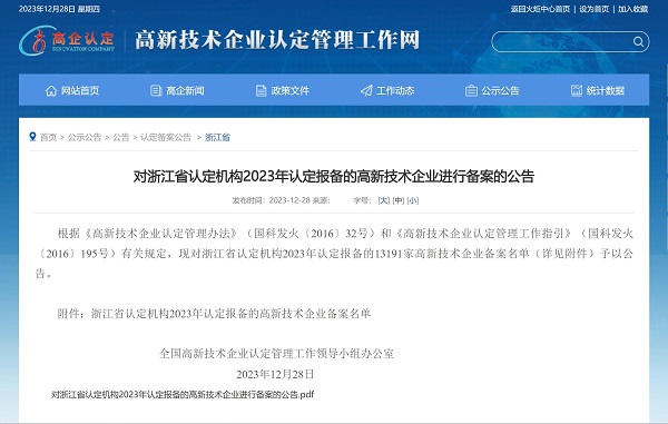 2023年12月28日,全國(guó)高新技術(shù)企業(yè)認(rèn)定管理工作領(lǐng)導(dǎo)小組辦公室發(fā)布《對(duì)浙江省認(rèn)定機(jī)構(gòu)2023年認(rèn)定報(bào)備的高新技術(shù)企業(yè)進(jìn)行備案的公告》,中國(guó)能源工程集團(tuán)有限公司(以下簡(jiǎn)稱“中國(guó)能源工程集團(tuán)”)所屬中清能源(杭州) 有限公司...